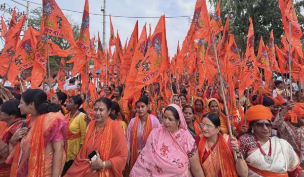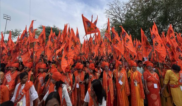 जयपुर। राजधानी जयपुर में राम राज्य संकल्प सेवा समिति की ओर से 10वीं विशाल राम नवमी शोभायात्रा धमधाम से निकाली गई। गुरुवार शाम 5 बजे प्राचीन शिव हनुमान मंदिर, जेकब रोड से प्रारंभ शोभायात्रा में लगभग डेढ़ हजार मातृशक्ति एवं इतनी ही पुरुष सहित हजारों रामभक्तों ने भाग लिया। सभी भक्तों ने भगवान दुपट्टे ओढ़े एवं भगवा सेफ पहने पूरे मार्ग को केसरिया रंग में रंग दिया।