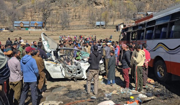 अधिकारियों ने बताया कि यह दुर्घटना गुंड में सीआरपीएफ कैंप के पास हुई, जब एक यात्री बस और एक कार में आमने-सामने टक्कर हो गई, जिसमें कम चार लोगों की मौत और कम से कम 21 लोग घायल हो गए।
