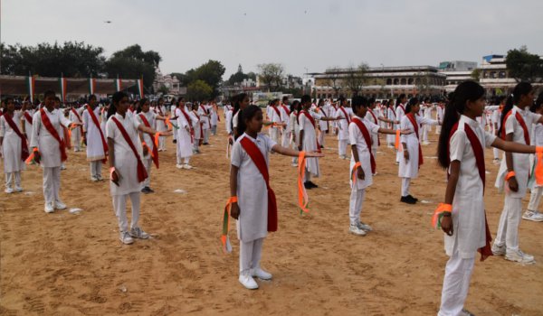 जिला स्तरीय समारोह में शिक्षा विभाग के द्वारा देश भक्ति एवं पारंपरिक लोक रचनाओं पर समूह नृत्य समुच्च प्रस्तुत किया गया। उनकी प्रस्तुति को भरपूर सरहाना मिली। इसका संयोजन मंगल चन्द संकलेचा राजकीय उच्च माध्यमिक विद्यालय मीरशाली द्वारा किया गया था। इसमें सावित्री बालिका विद्यालय, केन्द्रीय बालिका विद्यालय, मॉडल बालिका विद्यालय, ख्वाजा मॉडल, तथा एचकेएच स्कूल के लगभग 160 विद्यार्थियों ने भाग लिया। उन्होंने भारत हमको जान से प्यारा है, गूंज रहा हिन्दोस्तान, जय हो तथा विजयी भवः के गीत समुच्च पर शानदार प्रस्तुति दी।
