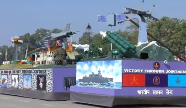 रक्षा मंत्रालय के अधीन त्रि-सेवा झांकी ‘ऑपरेशन सिंदूर, संयुक्तता से विजय’ थीम पर आधारित थी। इसमें ऑपरेशन सिंदूर में भारत की वायु सेना, थल सेना और नौसेना के योगदान को दिखाया गया। झांकी में लड़ाकू विमान राफेल, गाइडेड मिसाइल आकाश, वायु रक्षा प्रणाली एस-400 के साथ-साथ पाकिस्तान और उसके कब्जे वाले उन ठिकानों की छवियां भी बनाई गई थीं, जिन्हें ऑपरेशन सिंदूर के दौरान नष्ट किया गया था।