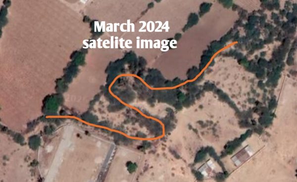 राजस्व नक्शे और इस कॉलोनी में से नाला अंग्रेजी के एस शेप का दिख रहा है। नाले का रूप एस शेप से बदलकर अंग्रेजी के एल शेप में परिवर्तित करके की फेसिलिटी का हिस्सा बनाने के दो आशंका हैं। एक तो ये कि कॉलोनजर के द्वारा प्रस्तावित प्रोजेक्ट की कुल भूखंड के 40% फेसिलिटी में से जमीन को बचाने को कोशिश हुई है या फिर नाले के बफर से प्लॉटों को। दोनों ही सूरत में भविश्व में कभी राजस्व रिकॉर्ड से कॉलोनी का मिलान किया गया तो भूखंड धारकों को समस्या आ सकती है। मार्च 2024 में भूखंड का में एस शेप का नाला स्पष्ट नजर आ रहा है, वहीं मार्च 2025 के चित्र में ये एल शेप का दिख रहा है।