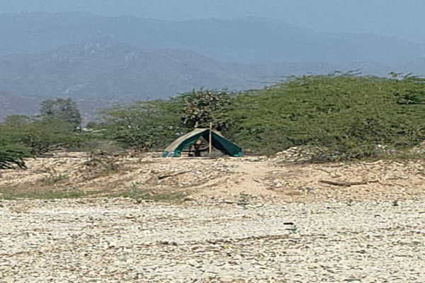आबूरोड में बनास नदी वाले रास्ते पर पांडुरी के निकट बनाया झोपड़ी नुमा अस्थाई कैंप।