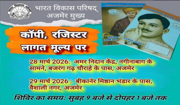 अजमेर में विद्यार्थियों के लिए सस्ता कॉपी-रजिस्टर शिविर 28-29 मार्च को