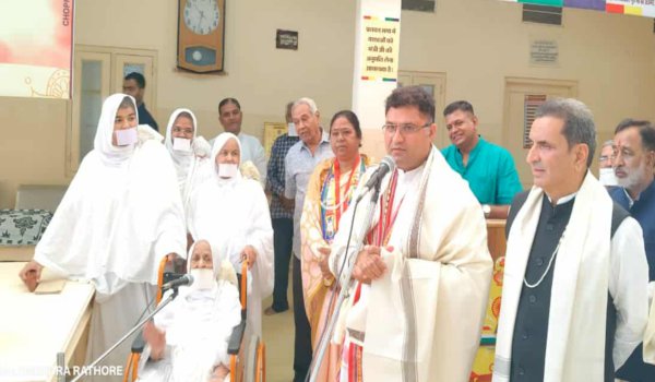 अशोक तंवर ने साध्वी व संत का लिया आशीर्वाद, विशेष बच्चों व बुजुर्गो से की मुलाकात