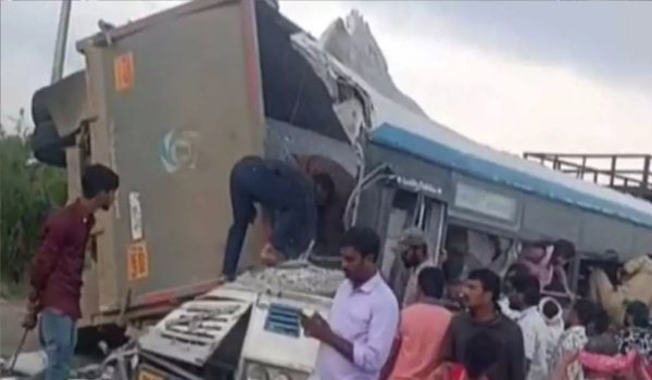 हैदराबाद। तेलंगाना के रंगारेड्डी ज़िले में हैदराबाद-बीजापुर राष्ट्रीय राजमार्ग पर सोमवार सुबह एक सरकारी बस और बजरी से लदे ट्रक की जोरदार टक्कर के बाद 18 लोगों की मौत हो गई और 15 अन्य घायल हो गए, जिनमें से कुछ की हालत गंभीर है।