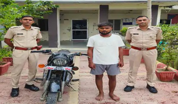 पुलिस टीम में ने जांच के बाद भीलवाड़ा स्थित संजय कॉलोनी, खेड़ा खूंट माताजी के निकट रहने वाले सुनिल पुत्र देवालाल माली को गिरफ्तार कर उसके पास से एक इनफिल्ड बाइक बरामद की।