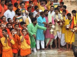 वाराणसी में मां गंगा का दुग्धाभिषेक कर मोदी के दीर्घायु होने...