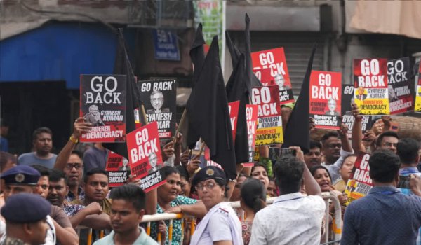 रविवार रात जब कुमार और उनकी टीम शहर पहुंची तो विरोध प्रदर्शन शुरू हो चुके थे। नेताजी सुभाष चंद्र बोस इंटरनेशनल एयरपोर्ट से न्यू टाउन में उनके होटल तक के रास्ते में प्रदर्शनकारियों ने काले झंडे दिखाए और वापस जाओ के नारे लगाए। सत्तारूढ़ तृणमूल कांग्रेस और वाम पार्टियों के समर्थकों ने अलग-अलग विरोध प्रदर्शन किए, जिसमें वाम कार्यकर्ताओं ने वोटर नहीं, तो वोट नहीं जैसे नारे लगाए।
