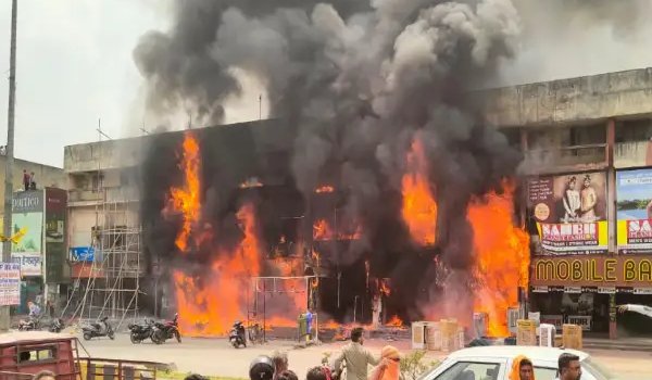 कोरबा। छत्तीसगढ़ के कोरबा शहर के मध्य स्थित एसएस प्लाजा में सोमवार सुबह अचानक भीषण आग लग गई, जिससे प्लाजा में स्थित कई दुकानें आग की चपेट में आ गईं। आग की चपेट में आने वाली दुकानों में पद्मिनी ज्वैलर्स, बालाजी स्टील सहित अन्य प्रतिष्ठान शामिल बताए जा रहे हैं। आग लगने की घटना के बाद इलाके में अफरा-तफरी मच गई।