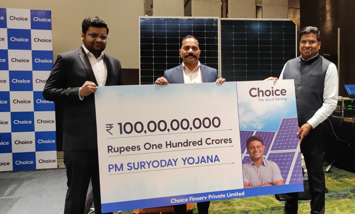 Jaipur: Choice Finserv Private Limited (subsidiary and Non-Banking Financial Company (NBFC) arm of Choice International Ltd) announced a significant commitment of Rs. 100 crores towards Solar Financing as part of the Pradhan Mantri Suryoday Yojana. The major announcement was made today in Jaipur, reflecting Choice’s dedication to supporting the government’s vision of promoting solar energy and sustainable development.