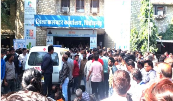 चित्तौड़गढ़ : भाजपा नेता का शव कलेक्ट्रेट परिसर रखकर किया प्रदर्शन