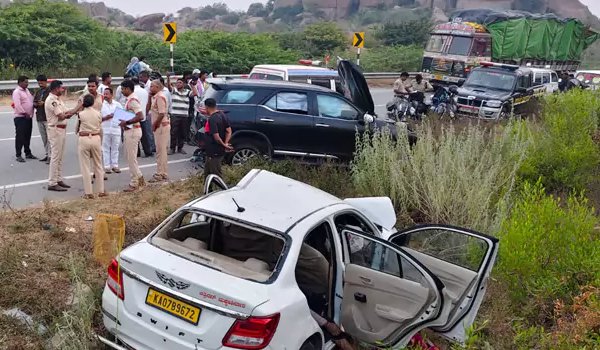 पुलिस के मुताबिक सभी पीड़ित कर्नाटक के कोलार जिले के चिक्का होसाहल्ली गांव के रहने वाले थे। वे एक कार से मंत्रालय जा रहे थे, तभी उनकी गाड़ी येम्मिगनूर से कुरनूल आ रही एक फॉर्च्यूनर कार से टकरा गई।