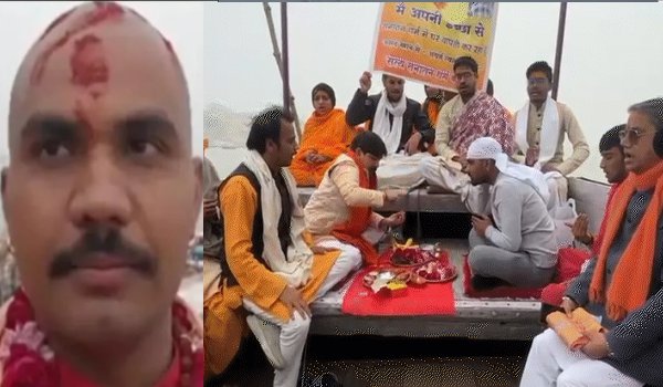 वाराणसी। धार्मिक नगरी काशी में मध्य प्रदेश के सागर से आए असद खान ने सोमवार को गंगा की गोद में नाव पर सनातन धर्म अपनाते हुए स्वयं को अथर्व त्यागी नाम दिया। ब्राह्मणों द्वारा असद खान का शुद्धीकरण किया गया और उसका नाम अथर्व त्यागी रखा गया।