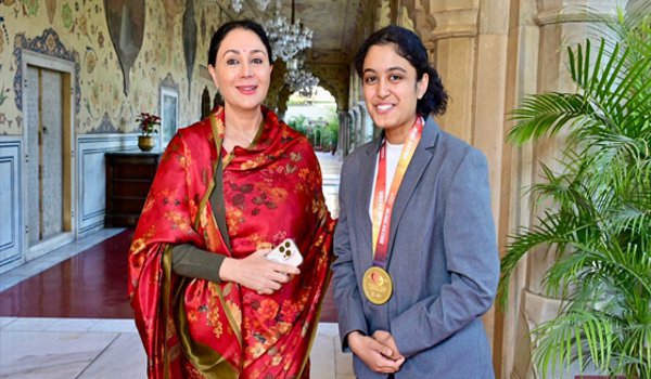 जयपुर। राजस्थान की उपमुख्यमंत्री दिया कुमारी से शनिवार को यहां डेफलिम्पिक्स-2025 स्वर्ण पदक विजेता अनुया प्रसाद ने मुलाकात की।