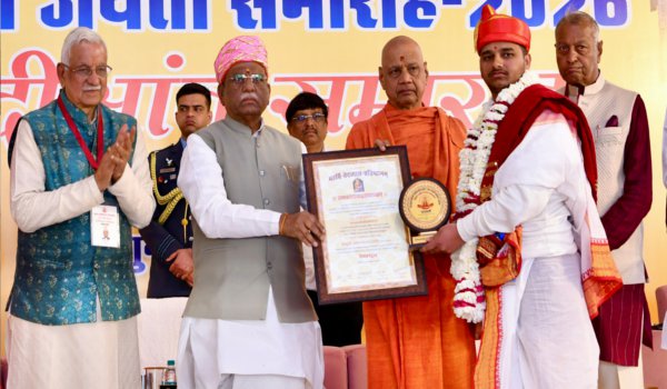 राज्यपाल हरिभाऊ बागड़े ने कहा कि वेद जीवन जीने का संविधान हैं। वे मानव को आदर्श आचरण, संयम और सत्य के मार्ग पर चलने की प्रेरणा देते हैं। उन्होंने कहा कि ऋषि-मुनियों की दिव्य अनुभूतियाँ वेद मंत्रों के रूप में अभिव्यक्त हुई हैं। इसे श्रुति परंपरा के माध्यम से पीढ़ी दर पीढ़ी संजोया गया। उन्होंने औपनिवेशिक शिक्षा पद्धति के कारण गुरुकुल व्यवस्था के खंडित होने का उल्लेख करते हुए कहा कि आज ऎसे संस्थान भारत की आत्मा को पुनः जागृत कर रहे हैं।