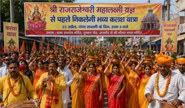 अजमेर। पुष्कर घाटी स्थित प्राचीन श्री नौसर माता मंदिर परिसर में 24 अप्रेल से होने वाले श्री राजराजेश्वरी महालक्ष्मी यज्ञ को लेकर श्रद्धालुओं में उत्साह का माहौल है। इस धार्मिक आयोजन की शुरुआत 23 अप्रैल को गंगा सप्तमी के पावन अवसर पर भव्य कलश यात्रा के साथ होगी।