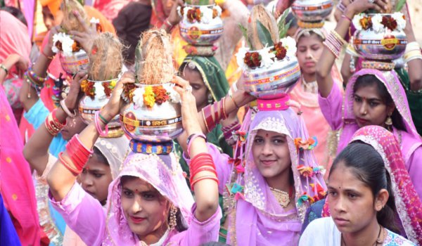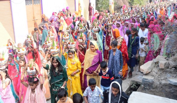 दो दिशाओं से निकली कलश यात्रा, स्टेडियम में समागम