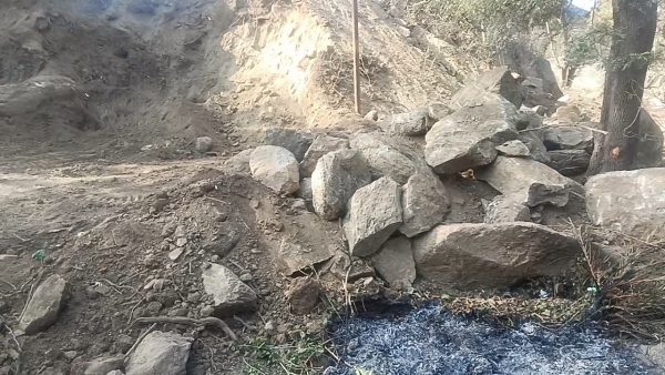 माउंट आबू में स्काउट ग्राउंड मुख्य द्वार पहले तोड़ दी गई बड़ी बड़ी चट्टानें और खोदी गई मिट्टी।