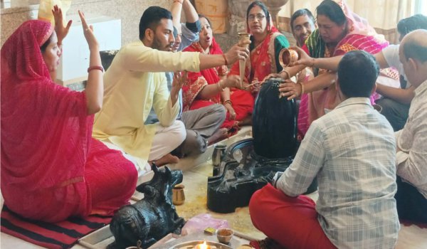 पूजन कार्यक्रम के बाद मंदिर में महाआरती का आयोजन किया गया। आरती के समय पूरा वातावरण “हर-हर महादेव” के जयघोष से गूंज उठा। अंत में श्रद्धालुओं को प्रसाद वितरण किया गया।