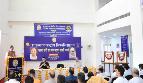 अजमेर। महात्मा गांधी और लाल बहादुर शास्त्री का जीवन स्वयं में राष्ट्रभक्ति का प्रतीक रहा। उनका हर क्षण, हर कार्य और हर संकल्प केवल भारत की प्रगति और उत्थान के लिए ही था। यह ये विचार राजस्थान केंद्रीय विश्वविद्यालय के कुलपति प्रो आनंद भालेराव ने महात्मा गांधी और लाल बहादुर शास्त्री जयंती के अवसर पर विश्वविद्यालय में आयोजित कार्यक्रम में व्यक्त किए। कार्यक्रम का आरंभ महापुरुषों के चित्र पर माल्यार्पण के साथ हुआ।