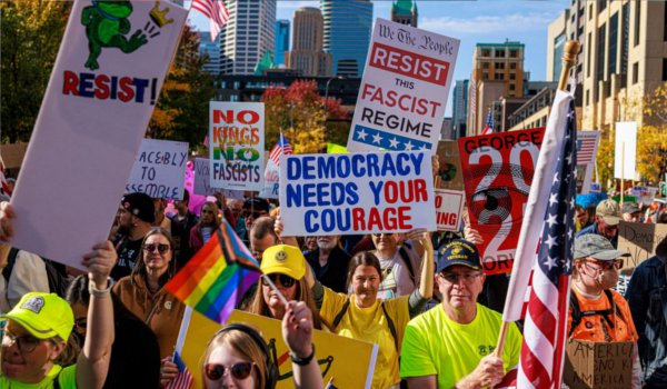 न्यूयॉर्क/सैन फ्रांसिस्को। अमरीका में शनिवार को 2,700 शहरों और कस्बों में लाखों लोग राष्ट्रव्यापी ‘नो किंग्स’ विरोध प्रदर्शनों में सड़कों पर उतर आए। यह अमरीकी इतिहास का अब तक का सबसे बड़ा एकदिवसीय विरोध प्रदर्शन था।