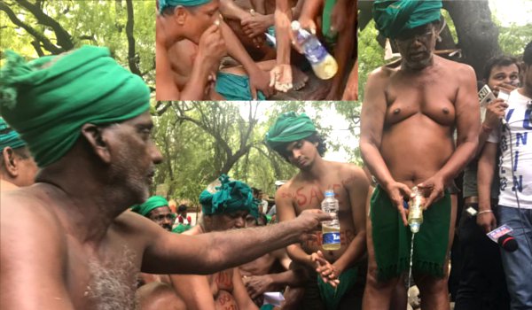 तमिलनाडु के प्रदर्शनकारी किसानों ने अब पेशाब पीकर किया विरोध