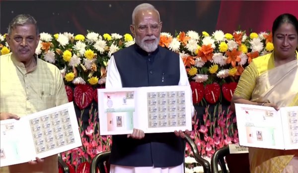 नई दिल्ली। प्रधानमंत्री नरेन्द्र मोदी ने बुधवार को यहां राष्ट्रीय स्वयंसेवक संघ (आरएसएस) के शताब्दी वर्ष पूरे होने के अवसर पर विशेष रूप से डिज़ाइन किए गए डाक टिकट और 100 रुपये का स्मारक सिक्का जारी किया। इस अवसर पर सर कार्यवाह दत्तात्रेय होसबाले, केंद्रीय संस्कृति मंत्री गजेंद्र सिंह शेखावत, दिल्ली की मुख्यमंत्री रेखा गुप्ता मौजूद थीं।