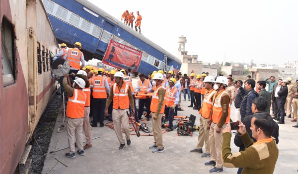दौराई स्टेशन यार्ड में एनडीआरएफ के साथ रेलवे का मॉक ड्रिल अभ्यास