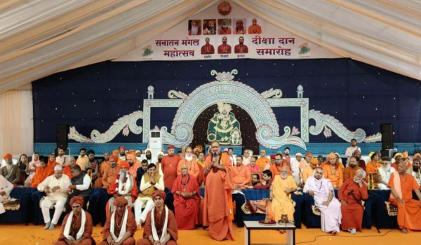 महामंडलेश्वर स्वामी हंसराम नव दीक्षित संतों को मंच पर लेकर आए