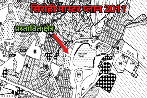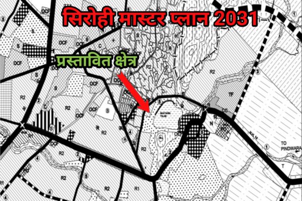 सिरोही का 2031 का मास्टर प्लान जिसमें नगर परिषद के खसरा संख्या 2695 की भूमि पार्क जोन में दिखाई गई है।