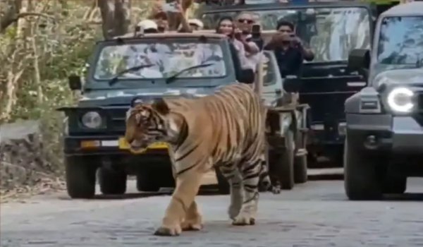 बाघ के आने से वाहनों की लंबी कतार लग गईं। करीब एक घंटे बाद बाघ गोमुखी की ओर बढ़ गया। वह देर शाम तक गोमुखी के पास नाले में रहा। इस दौरान वन विभाग का दल लगातार उसकी निगरानी करता रहा।