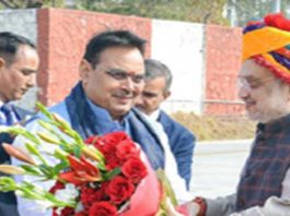 जयपुर में सीएम भजनलाल शर्मा ने की अमित शाह की अगवानी