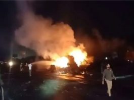 जयपुर-अजमेर राष्ट्रीय राजमार्ग पर ट्रक में भरे LPG गैस सिलेंडरों में...