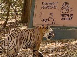 रणथम्भौर में सिंह द्वार पर श्रद्धालुओंं के बीच बाघिन आने से...