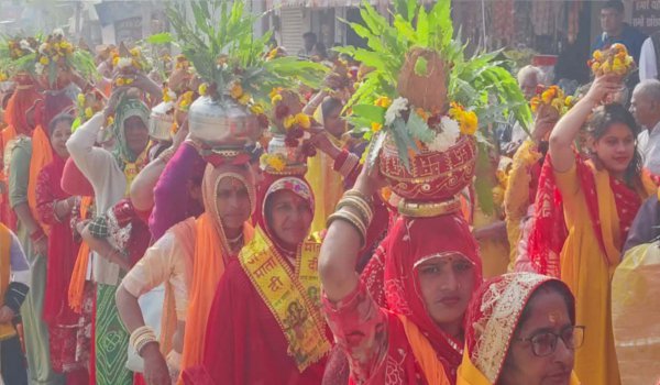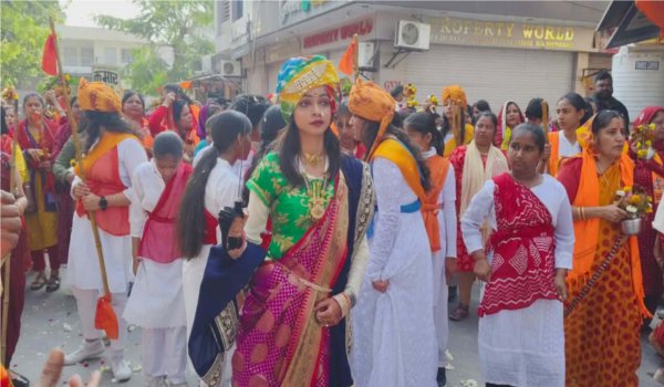 प्रवक्ता प्रकाश जेठरा नें बताया कि सुबह 9 से भव्य कलश यात्रा भूलेश्वर मंदिर से प्रारंभ होकर वैशाली नगर के विभिन्न मार्गो से होती हुई दीनदयाल पार्क पहुंची। कलश यात्रा का वैशाली नगर में जगह-जगह स्वागत द्वार लगाकर और पुष्प वर्षा कर भव्य स्वागत किया गया। चौराहों पर युवतियों ने खड्ग के साथ प्रदर्शनक किया। शोभायात्रा के आगे दो घोड़ों पर लक्ष्मी बाई और अहिल्या बाई तलवार लिए युवतियां चल रही थीं।