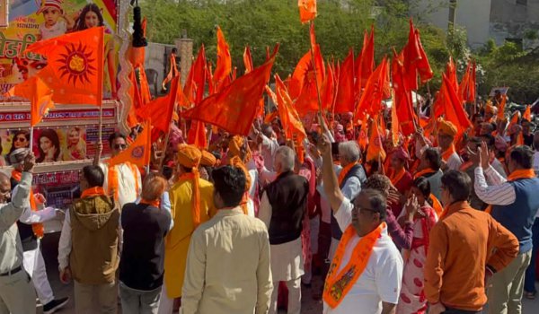 अजमेर। कोटड़ा महाराणा बस्ती में विराट हिन्दू सम्मेलन के अवसर पर भव्य शोभायात्रा निकाली गई तथा सीताराम मन्दिर उद्यान में धर्मसभा आयोजित की गई।