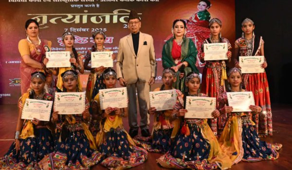 संस्था की निदेशिका दृष्टि राय ने बताया कि कार्यक्रम की शुरुआत अजमेर कथक कला केन्द्र के छात्रों द्वारा भजन गायक करुणा गौर के नेतृत्व में दुर्गा स्तुति एवं शिव स्तुति की प्रस्तुति से हुई। संस्था की संस्थापक स्व.डॉ. नुपुर रॉय की स्मृति में उनकी 83वीं जन्मजयंती के उपलक्ष में आयोजित नृत्यांजलि 2025 कार्यक्रम की शुरुआत में स्व.नुपुर रॉय के चित्र पर मार्यापण कर उन्हें याद किया गया।
