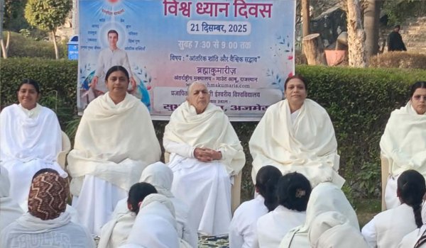 अजमेर। वर्तमान समय में बढ़ते तनाव, अशांति और नकारात्मक वातावरण के बीच मानसिक शांति और वैश्विक सदभाव का संदेश देने के लिए प्रजापिता ब्रह्माकुमारी ईश्वरीय विश्वविद्यालय अजमेर शाखा द्वारा वर्ल्ड मेडिटेशन डे के अवसर पर एक विशेष संगठित मेडिटेशन कार्यक्रम का आयोजन सुभाष उद्यान में सुबह शांत एवं सकारात्मक वातावरण में हुआ।